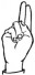 На ћирилици написано КОСТАДИН РАДОВАНОВИЋ састоји се из 19 слова [?]. Исписано ћириличном једноручном азбуком за глувонеме: